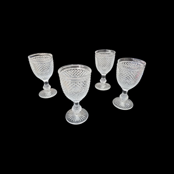 • Quatro taças para vinho água em cristal de bico de jaca, Alt. 14, Diam. 6 cm.