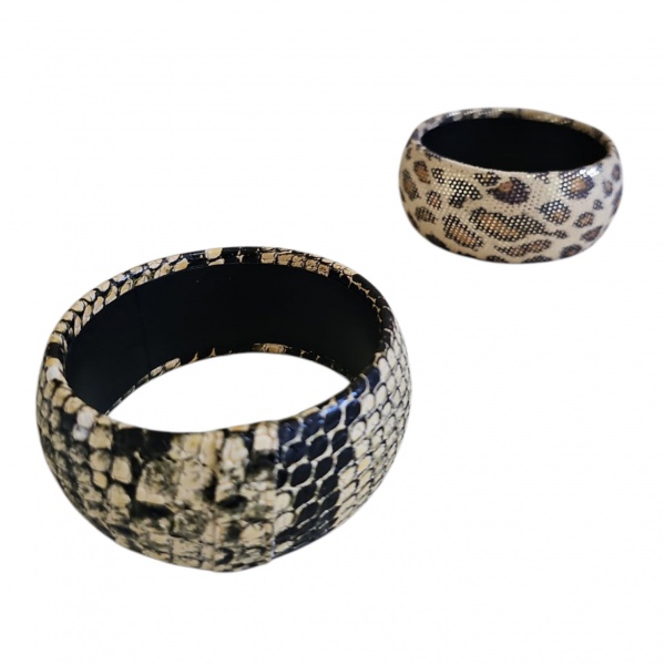 • Duas pulseiras em couríssimo de animal print, Diam. 7, 5 cm.