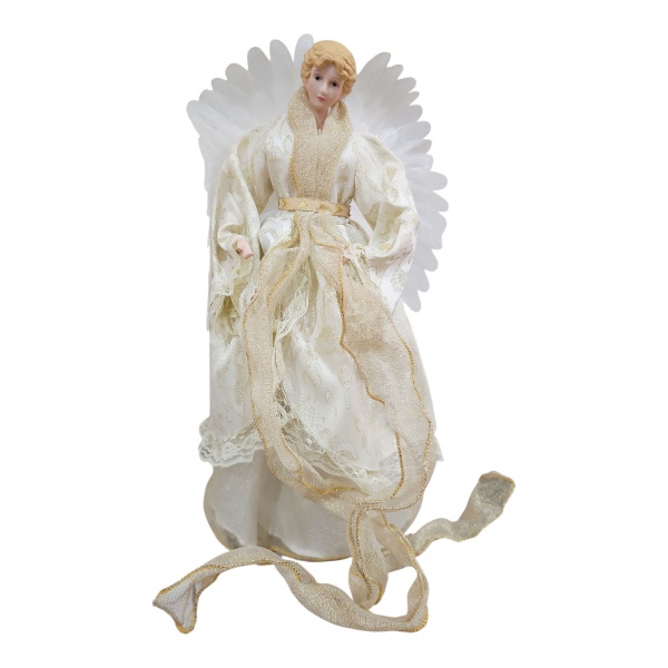 • Escultório representando `anja` asas articuladas com iluminação inclusive nas vestes, em aramado, rosto e mãos em resina, vestes em tecido, Alt. 40 cm.