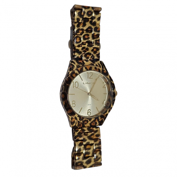 • Relógio de pulso feminino analógico Lince oncinha LRB4214L, Diam. 4, pulseira Diam. 9 cm.