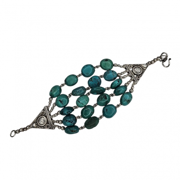 • Pulseira indiana com pedras sintéticas verdes, 78,4 g. bruto.