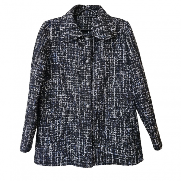 • Casaco feminino Tam. G em tweed bordado dom fios prateados  e lantejoulas, ombro 40, Com. 85 cm.