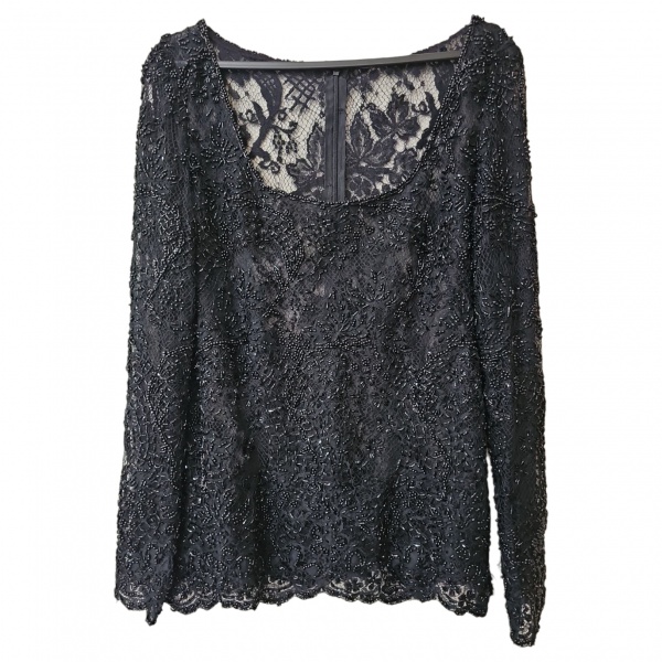 • Duas blusas pretas femininas Tam. M. uma blusa sem manga by Lança Perfume 100% poliéster, Com. 49 cm. e outra de tela rendada com  top em rendado, ombro 35, Com. 35 cm.,