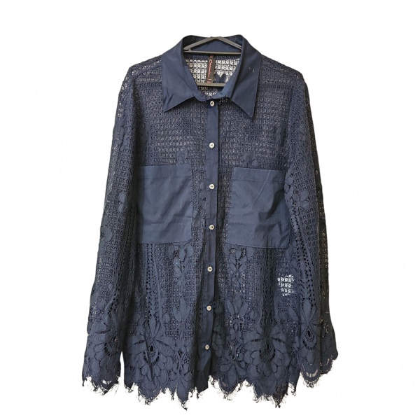 • Camisa feminina Tam. M. by Carmim, em algodão e renda na cor marinho, ombro 45, Com. 81 cm.