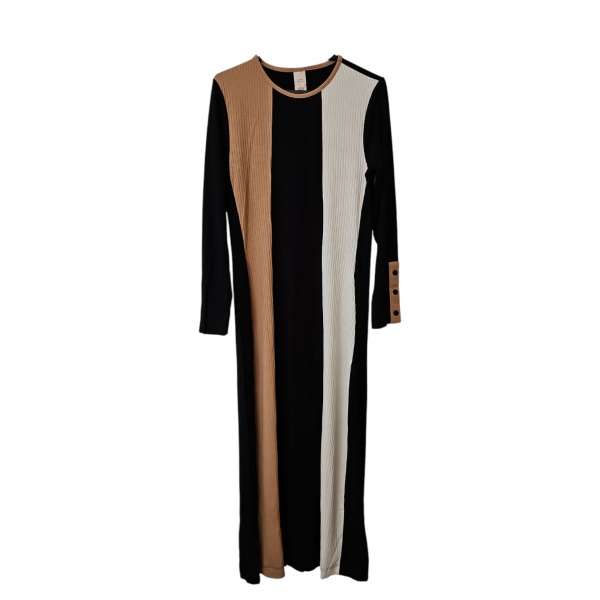 • Vestido longo Tam. P. by Gatos & Gato em viscose canelada nas cores preto caqui e branco com etiqueta original, nunca usado, ombro 35, Com. 125 cm.