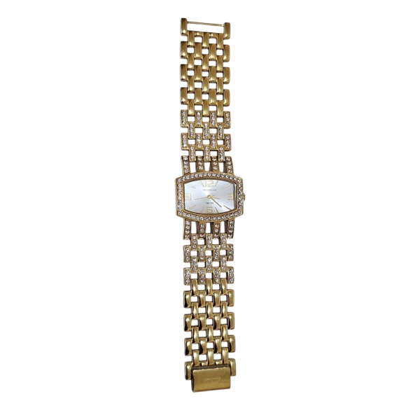 • Relógio feminino Technos, 763AR na cor dourada, craveja de mini brilhantes, Com. aa pulseira 17 cm.