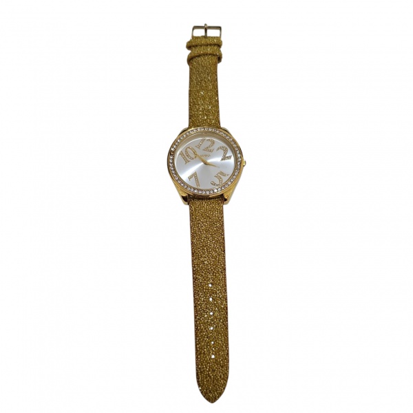 • Relógio feminino Euro  4444 dourado com bordas em pedras brilhantes, Diam. 4,5, Com. 22 cm.