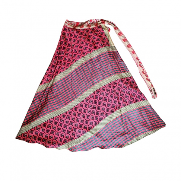 • Saia indiana Tam. M. sobreposta modelo envelope em poliéster estampada, Com.90 cm.