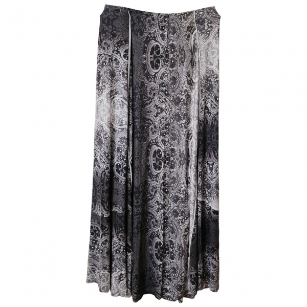 • Saia em poliéster estampada Tam. G. cintura 39, Com. 98 cm.