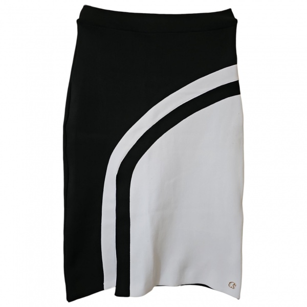 • Saia Tam. M. by Carmem Steffens em malha nas cores branco e preto, cintura 35, Com. 68 cm.