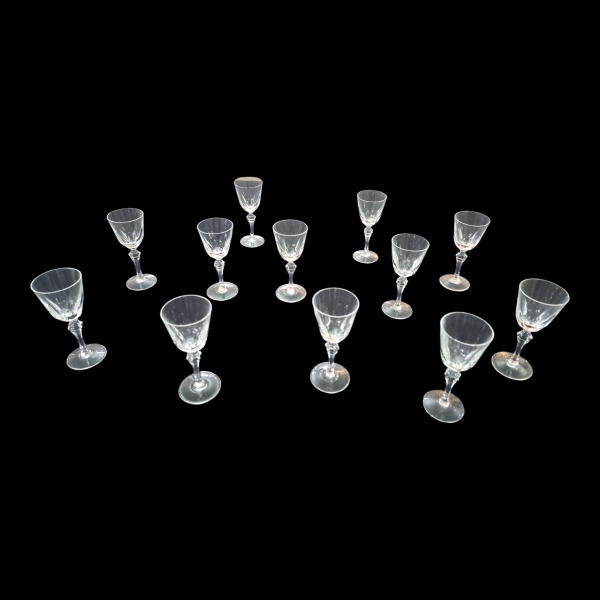 • Doze taças para licor em cristal translúcido, lapidação dedão, 12 x 5 cm.
