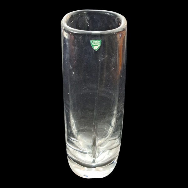 • Vaso Orrefors em grosso cristal translúcido  levemente facetado, Alt. 27, Diam. 1- cm.