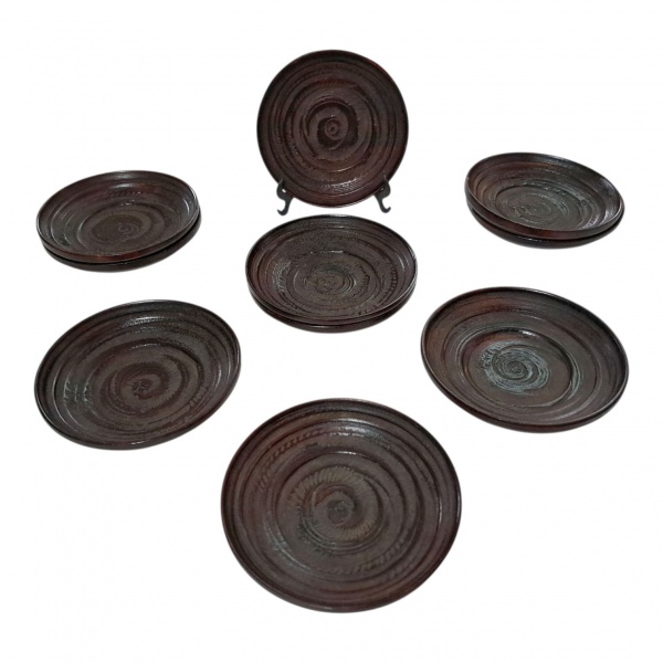• Dez travessinhas japonesas em madeira, Diam. 12, Alt. 4 cm.