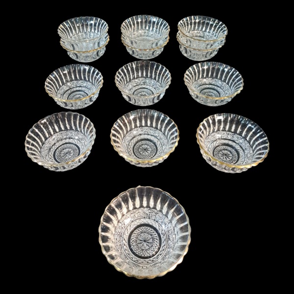 • Doze taças para sorvete/sobremesa em cristal lapidado com bordas douradas,  Diam. 12, Alt. 5cm.