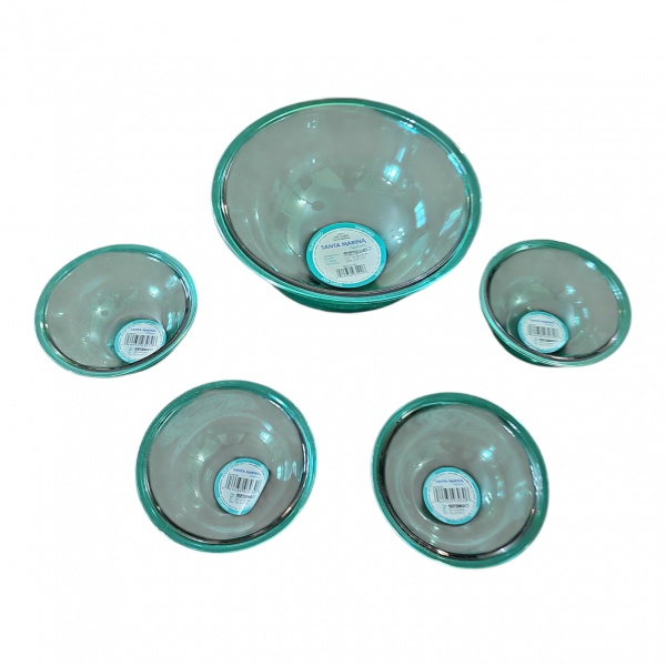 • Bowl com 4 taças para sobremesa em vidro Duralex Santa Maria na cor verde, nunca foi usado, em sua embalagem original, Diam. 20, Alt. 9 cm.