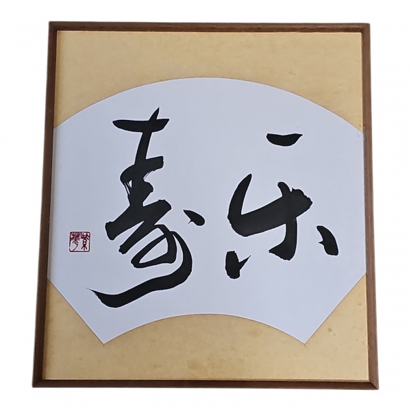 • Quadro com ideograma e selo vermelho, 40 x 44 cm.
