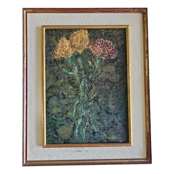 • MARILIA - Espátula sobre tela representando natureza morta,  41 x 52 cm.