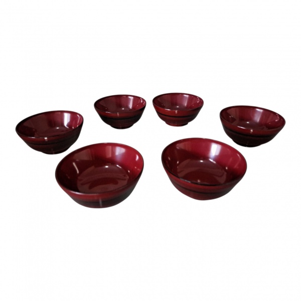 • Seis Undobati Japonesas - Tigelas em laca nas cores negra e grená, em sua embalagem original,  11 x 6 cm.