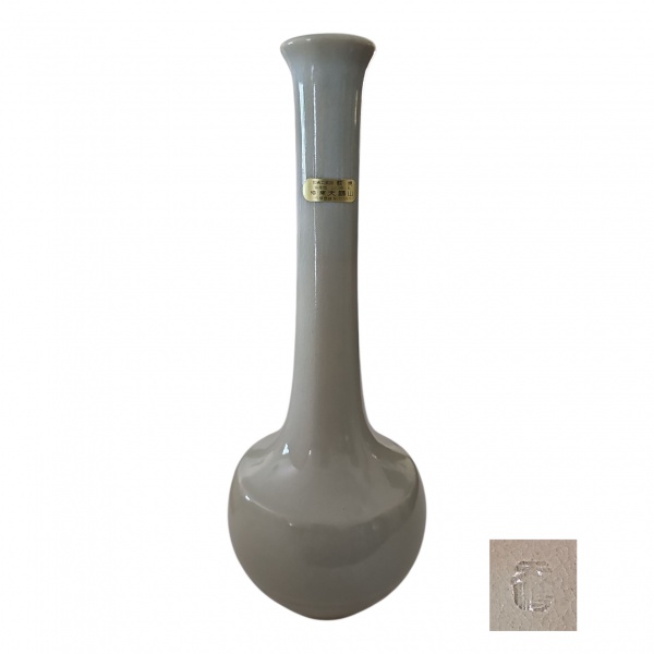 • Vaso japonês em cerâmica branca em sua embalagem original, Artesanato tradicional de  Hagi-Yagi, Província de Yamaguchi, Alt.30, Diam. 10 cm.