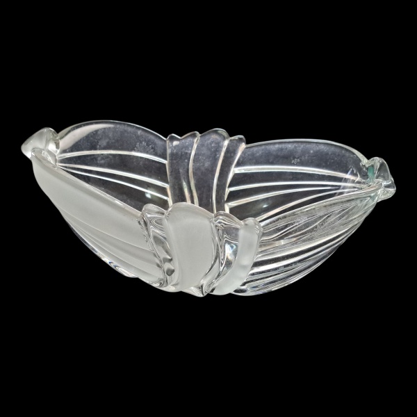 • Centro de mesa navete em cristal translúcido e jateado lapidado, 28 x 18, Alt. 12 cm.