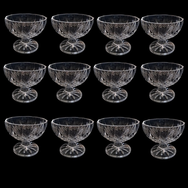 • Doze taças para sorvete/sobremesa em cristal lapidado chancelaria Longchamp, Cristal D`Arques em suas embalagens originais, Alt. 8, Diam. 10 cm.