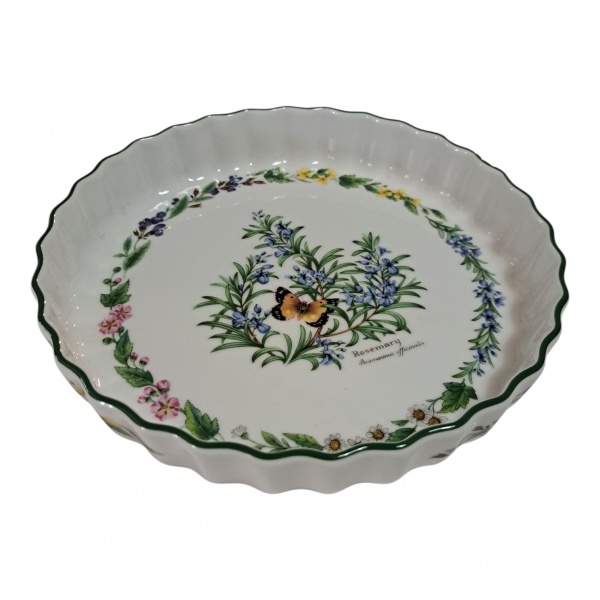 • Travessa em porcelana policromada pintada à mão, assinada  Rosemary, bordas babadas na cor verde, by Worcester Herbs, Diam. 22, Alt. 4 cm.