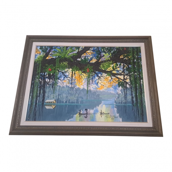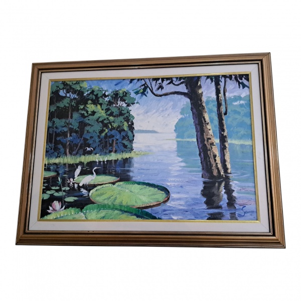 • MOACIR ANDRADE - OST assinado ao centro, datado 1997 e intitulado Amazonas- Brasil,  Pintor amazonense autoditada, graduado em mujseologia, 1927/2016, 81 x 63 cm.