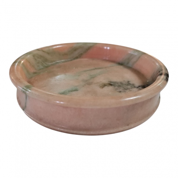 • Travessa em mármore rosa rajado, Diam. 18, Alt. 4 cm.