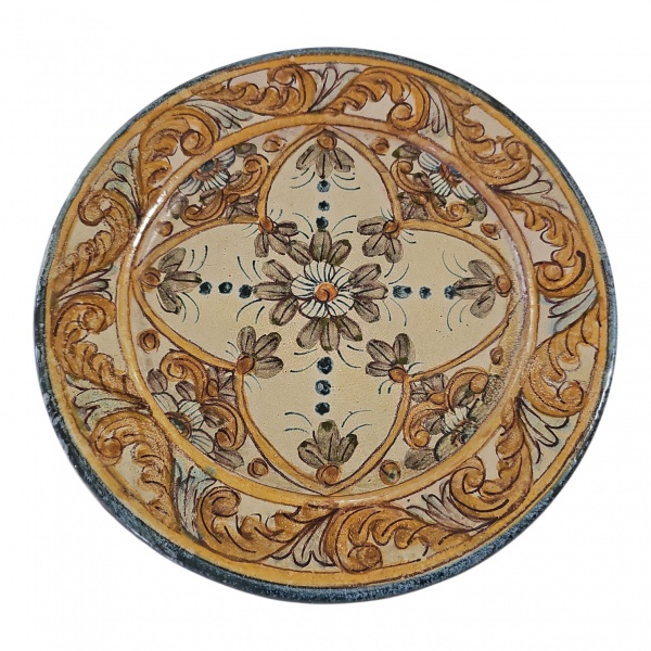 • COLECIONISMO - prato em cerâmica policromada marcado no verso, Olaria de Almansil, Algarve, assinado Ricardo, Diam. 24 cm.