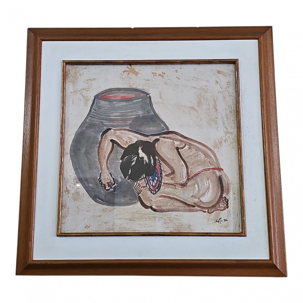 • SATO - Aquarela representando índio artesão, acid e datado 86,  60 x 65 cm.