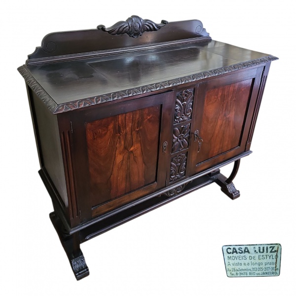 • Buffet/Arca Renascença em Imbuia by Casa Luiz, RJ, com tampo com parte posterior com medalhão central, apoiado em corpo retangular, 2 portas laterais, pernas arrematadas em trava, e colunata central,  125 x 50, Alt. 120 cm.