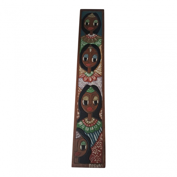 • ARTE POPULAR - Talha em madeira com figuras de negas em policromia, assinado FARIAS, 52 X 9 CM.