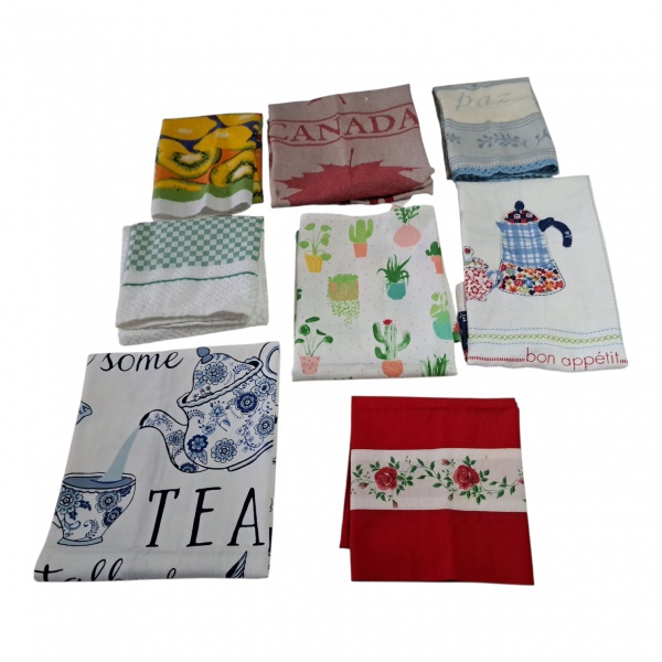 • Cinco toalhas de mesa e 4 toalhas de mão de cozinha.