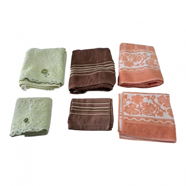 • Três jogos de tolhas banho e rosto, a marrom com bastante marcas de uso.