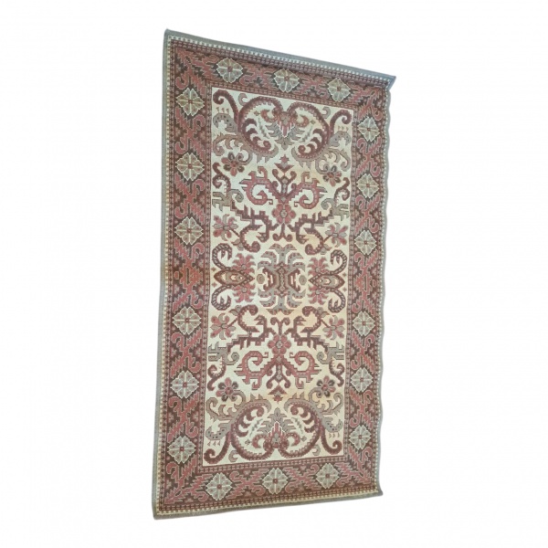 • Passadeira em ponto Arraialo feito à mão, nas cores grená/goiaba/verde e etc. 108 x 58 cm.