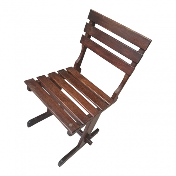 • Cadeira em madeira nobre, regoada no assento e encosto, pernas arrematadas em trava cavilhada, 42 x 38, Alt. 86 cm.