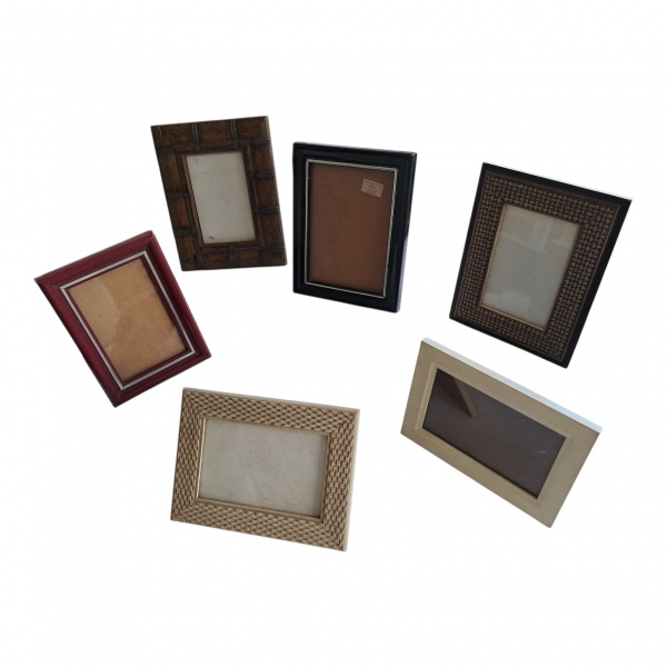 • Seis porta-retratos diversos, 14 x 18 a 20 x 15 cm.