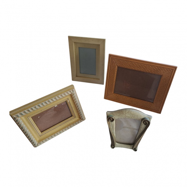 • Quatro porta-retratos diversos, 30 x 25 a  21 x 17 cm.