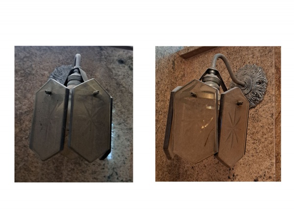 • Par de arandelas com lâminas de vidro lapidado 26 x 14 cm.