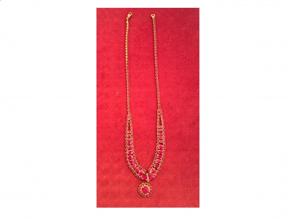 • Colar em metal dourado cravejado de pedras vermelhas.