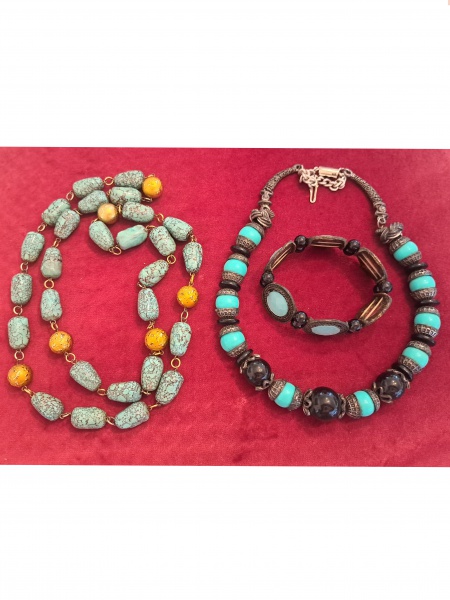 • Duas pulseira, 1 gargantilha em materiais diversos.